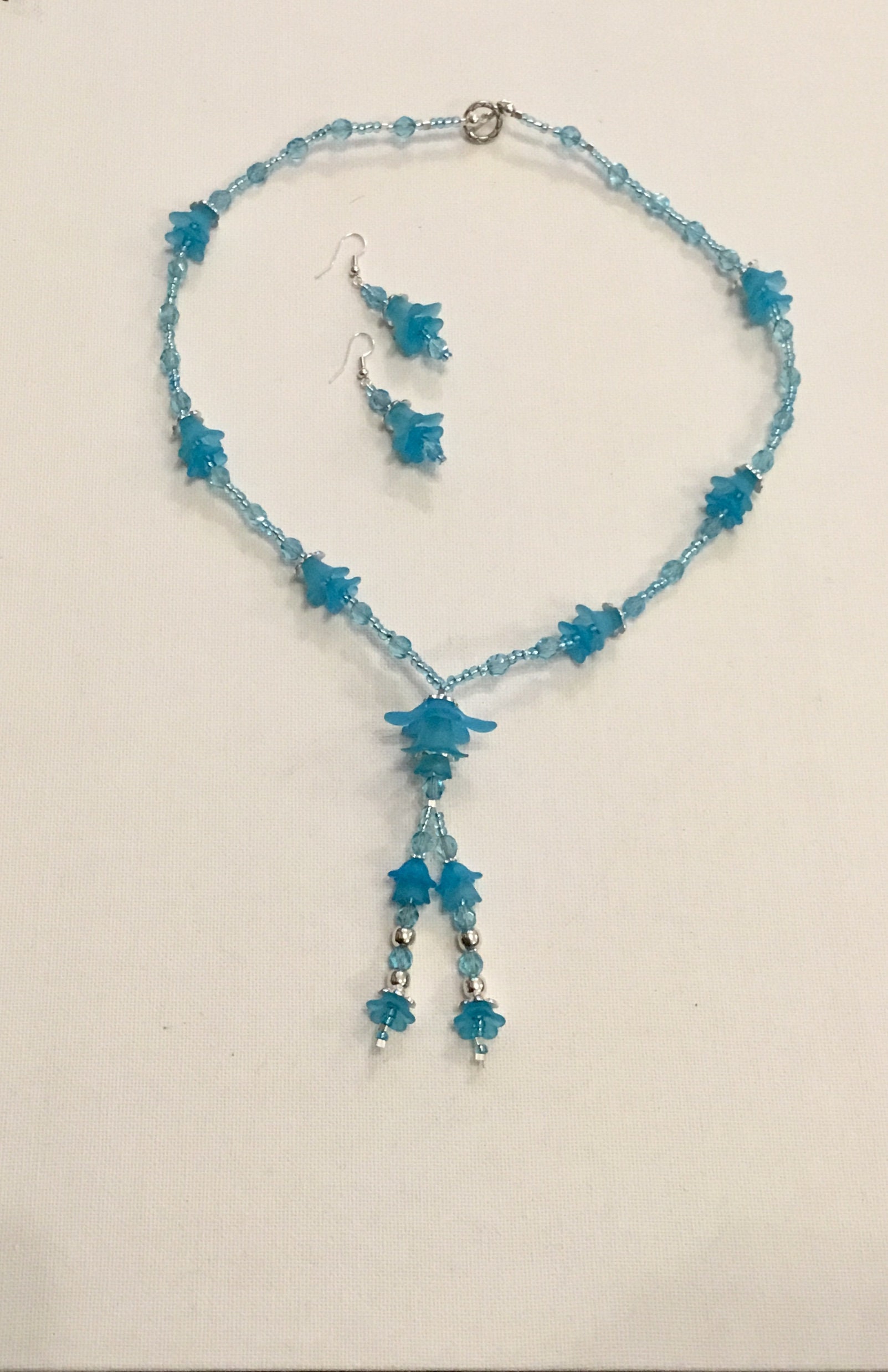 Pretty Turquiose/Blue Flower Bead Necklace with Earrings
