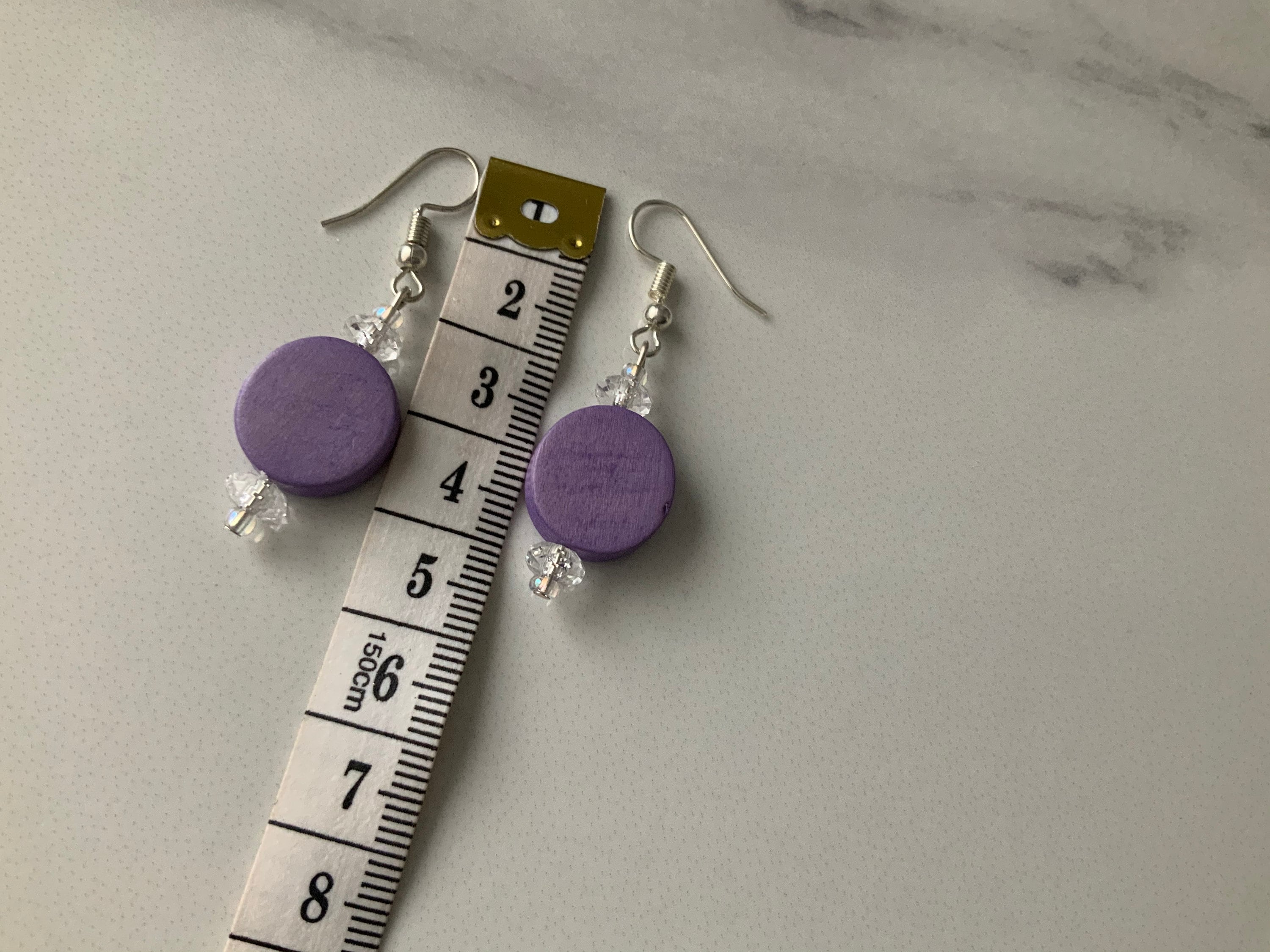 The earrings have been made with purple wooden beads,